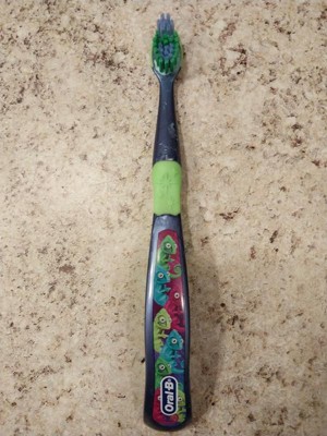 Create a fun routine with Oral-B Kid's Manual Toothbrush, the #1 dentist-recommended toothbrush for kids. Oral-B Manual Toothbrush was designed to clean hard-to-reach places with its power tip, helping your kids fight cavities and get a healthier smile. Kids need effective protection as they lose their baby teeth and their permanent teeth start to grow. The Oral-B Chameleon's bristles will indicate when it's time for a new toothbrush by changing its color from green to yellow, which means it doesn't lose its effectiveness and continues to provide your kids with the protection they need. With the Oral-B Chameleon Toothbrush, protecting their gums at an early age is now easy. It comes with a cushioned head, keeping their teeth clean while still being gentle on them. The tongue cleaner helps your kids achieve fresh breath by getting rid of bacteria that can stay in the mouth. Continue the fun by replacing their toothbrush when needed to give them an advanced cavity protection for their young smiles. Discover a new color-changing regimen with the variety of products on the Oral-B and Crest Chameleon line and teach your kids fun and healthy habits with every brush. Do not use on children under age 3.