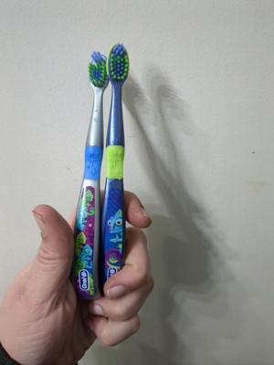 [This review was collected as part of a promotion.] Oral-B kid's, color changing, manual toothbrush 2CT extra soft. For ages 3 years +. When bristles change from green to yellow it's time to replace. 🪥🦷
