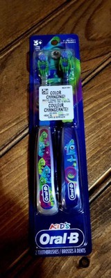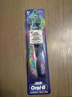 [This review was collected as part of a promotion.] Oral-B kid's, color changing, manual toothbrush 2CT extra soft. For ages 3 years +. When bristles change from green to yellow it's time to replace. 🪥🦷