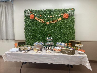 These table cloths worked perfectly for a gender neutral baby shower. The plastic is shiny and thick and the edges are scalloped. So cute! I paired these with the “little cutie” napkins and plates with oranges from the same brand at Target. Love the economical and adorable decor Target offers!