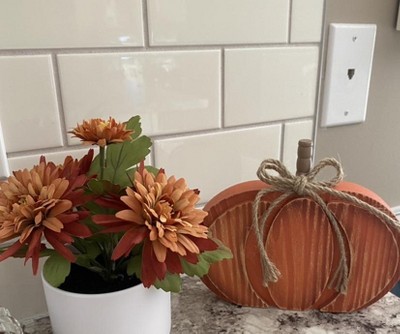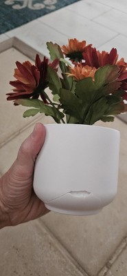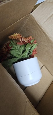 Brighten up your indoor space with this Daisy Mini Arrangement from Room Essentials™. This artificial arrangement features realistic-looking orange daisy flowers with leaves and stems housed in a white plastic pot with moss filler for instant display. Set it in an empty space next to the entryway console, on an end table or in a corner nook for a bright and elevated focal point that needs no watering.