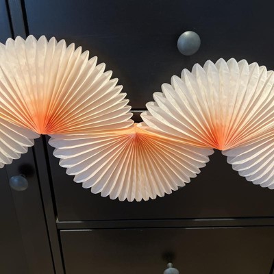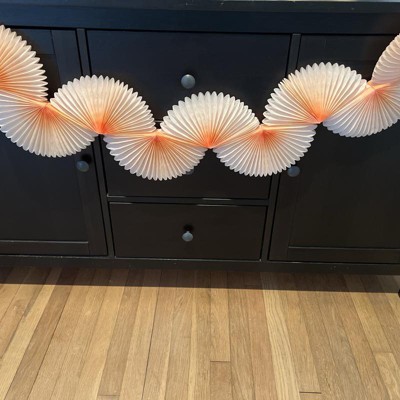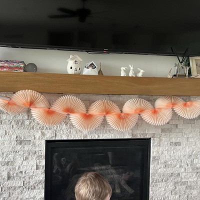 Add a bold pop of color to any celebration with the Orange Fan Garland - Spritz™. This festive decoration features bright orange paper fans strung together, creating a fun and eye-catching look. Whether you're decorating for a birthday, holiday or special event, this garland is easy to hang and reusable for multiple occasions. It’s a simple way to bring a cheerful vibe to your space.
