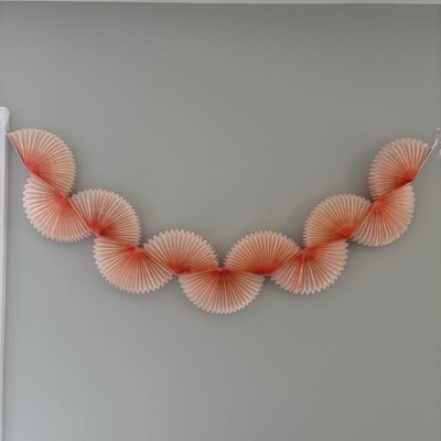 [This review was collected as part of a promotion.] How fun is this banner! I love the ombre affect it has going on and how sturdy it is. It is a peachy pink coral color and I just love it. It folds up perfectly as well if you wanted to use it then save it for another time or event. It is 5 feet long and to assemble was super easy just slide it out of the box and hold on to each string to open it up and to fold it back up you just lay it down and press each side to the center. I received an incentive to write this review.