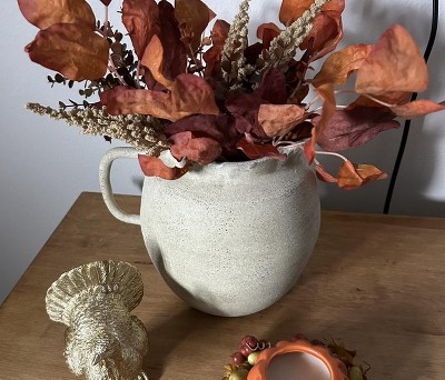 Create a gorgeous arrangement in your home or office space with this Leaf Mini Bundle from Room Essentials™. This bundle of stems features an arrangement of artificial orange leaves and grasses tied together for a lovely look that blends well with a variety of decor. Whether displayed solo in a vase or styled in a floral arrangement, the mini bundle adds beauty and effortless charm to any space without the need for watering or maintenance.