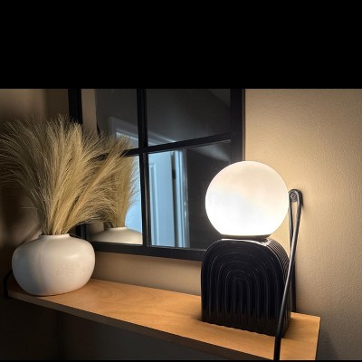 Create a lovely setting for any occasion with the Orb Glass Shade with Ceramic Base Table Lamp from Room Essentials™. The table lamp features an orb glass shade with a ceramic base in a black hue for a standout appeal that beautifully complements any decor style. Designed with an electric power source for easy operation, this desk lamp is perfect for your home office or as an accent on your entryway table.