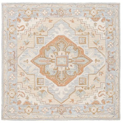 The rug's majestic pattern showcases a traditional motif with intricate details and flourished accents, capturing the essence of classic design with a contemporary twist. Its versatile square shape and modest pile height of 3/8" make it an ideal addition to spaces that crave a touch of understated luxury.