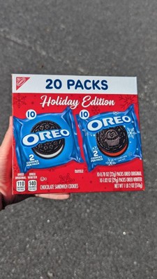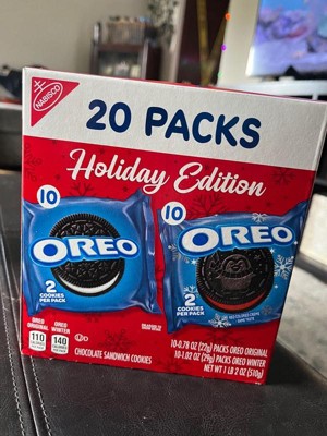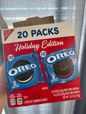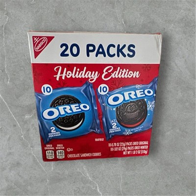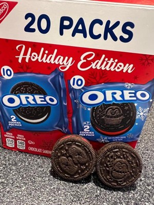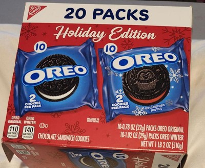 - One 20 count OREO Holiday Cookie Variety Pack including original OREO Chocolate Sandwich Cookies and OREO Red Creme Holiday Cookies (packaging may vary)