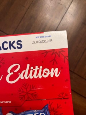 - Each box contains 10 original OREO cookies and 10 OREO Red Creme holiday cookie snack packs with six festive designs
