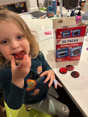 [This review was collected as part of a promotion.] What’s not to love with these Oreos? They’re obviously delicious. Coming two in a pack is great, keeps them fresh and easy portion control. The holiday designs and red frosting are super cute and festive. My kids were so excited when I showed them the box!