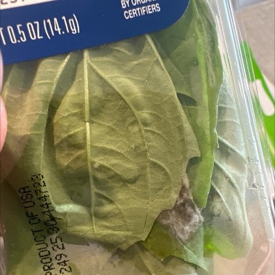 Very pathetic how drive-up employees thought they could sneak this disgusting and old basil into a bag. One leaf had mold on it. Gross! Will not buy again. Disappointing.