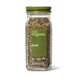 Always have the perfect herb seasoning on hand with the help of this Organic Basil from Good & Gather™ . Basil leaves are an aromatic spice with a peppery taste that make a great addition to tomato sauces, pestos and vinegars. You can also add them to a variety of different meat dishes, vegetable dishes, curries, stews and even sprinkle them on top of pizzas to get that authentic flavor everyone loves. Whether you're whipping something up from scratch or looking to add a little flavor to a frozen dish, this organic basil is a great seasoning staple to have stocked in your spice collection.