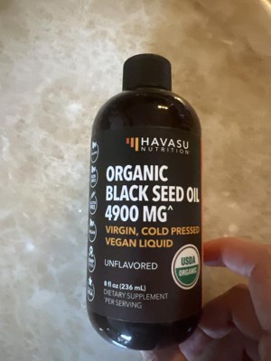Organic Black Seed Oil Cold Pressed Liquid 4900 MG, Black Cumin Seed Oil Boosts Immune Support, Hair & Digestive Health, Havasu Nutrition, 8 fl oz