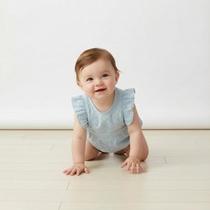 Makemake Organics Organic Eyelet Flutter Romper - Light Blue Eyelet - 0-3M