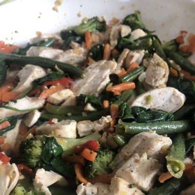 - 10oz bag of organic frozen stir-fry veggies with great flavor