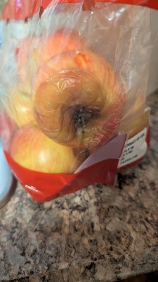I picked up a bag of organic Good & Gather honey crisp apples today and I was in awe of what I received. Four out of the six apples were badly bruised and one was completely cut in half because it broke from how bruised it was so only 1/6 apple as were actually edible. Disgraceful. Target, I’m sure you can do better. I will be there tomorrow for my refund, SMH!!