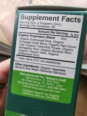 Organic Lymphatic Drainage Drops, Lymphatic Cleanse & Immune Support Supplement with Echinacea Goldenseal & Red Clover Extract, Nature's Craft, 60mL