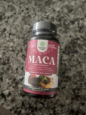 Organic Maca Root Capsules for Women, Potent Herbal Supplement with Female Enhancing Blend of Red Yellow & Black Maca Root, Nature's Craft, 30ct