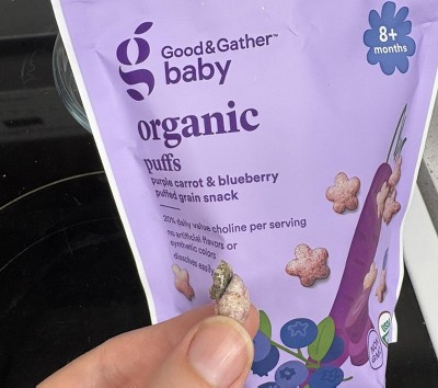 Treat your baby's taste buds to the yummy flavor of the Organic Puffs Baby Snacks from Good & Gather™. These baby organic puffs snacks are made with purple carrot and blueberry puffed grains to enhance the taste. The non-GMO puffs dissolve easily and are made with no artificial flavors or synthetic colors.