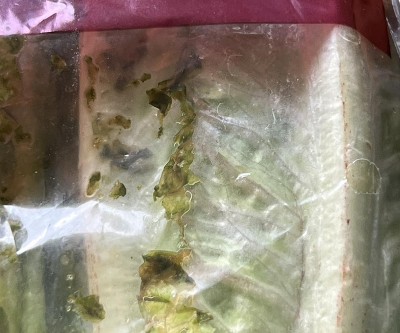 Old, harvested 5/23. Lots brown streaks, black & brown speckles also. Very wilted. Directly to trash. Why sell in this condition? Should I drive over & return it?