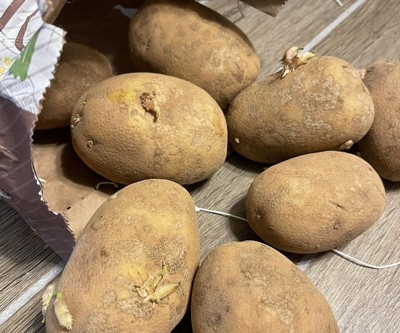I hope that the next time a Target shopper chooses these potatoes, they look at them. These have growing “eyes” which were clearly seen from the mesh opening.