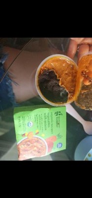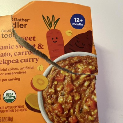 The packaging is very misleading. It shows chunks of actual food, but when you open it it’s basically a purée. I like to buy these for on the go meals for my 1 year old, but she’s too old to be eating purées. Only giving it 2 stars because she seemed to like the flavor. I’ll go back to buying Sprout meals.