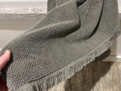 These towels are absolutely gorgeous. The fringe on the ends is so pretty. These are definitely towels you’re going to want to display. They are decently soft and thick. They’re very well made, and after washing them upon receiving there were no loose threads and no color fading. I will say, the green is definitely a darker olive color and closer to gray than green. But overall they are beautiful high quality towels and I will definitely be buying them as gifts in the future.
