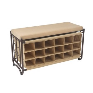 Organize It All Shoe Rack with Bench: Metal Frame, Holds 18 Pairs, Entryway Shoe Storage, Beige & Black, 39.75" Width