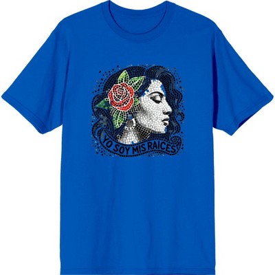 Orgullo Hispano Mosaic Flower Art Adult Royal Blue Crew Neck Short Sleeve Tee-3XL