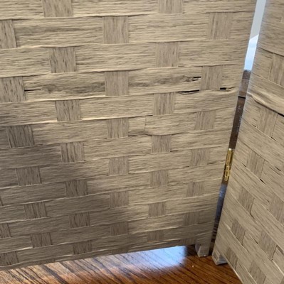 This is a hand crafted folding screen, built from three light weight wood frames cross woven with eco-friendly spun plant fiber. Hand-woven tight weave still allows some light to pass through. Use to divide a living space, hide a messy work area, or block light from a bay window or doorway.