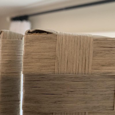 This is a hand crafted folding screen, built from three light weight wood frames cross woven with eco-friendly spun plant fiber. Hand-woven tight weave still allows some light to pass through. Use to divide a living space, hide a messy work area, or block light from a bay window or doorway.