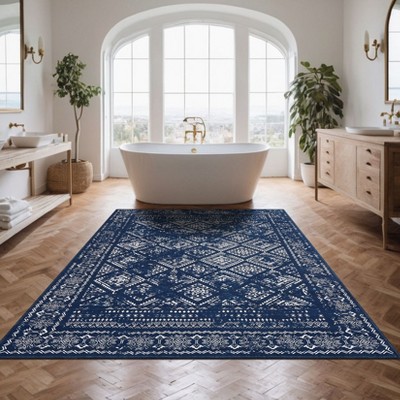 Oriental Machine Washable Rug Stain Resistant Easy Cleaning Rug with Non-Slip Backing Low Pile Soft Folding Floor Cover For Home Decor