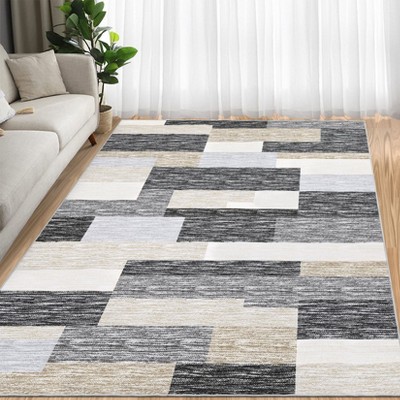 Oriental Machine Washable Rug with Non Slip Backing Ultra-Thin Non Shedding Stain Resistant Indoor Carpet for Living Room Bedroom Dining Room Office