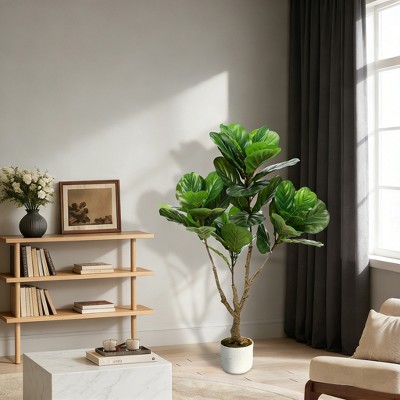 • Highly Realistic Design: Detailed silk leaves and a textured wood trunk replicate the appearance of a real fiddle leaf fig.