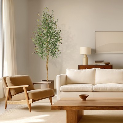 Orieon Artificial Fiddle Leaf Fig Tree 6FT with Black Pot, S-Shape Fake Ficus Tree with Natural Wood Trunk, Realistic Faux Plant for Home Decor