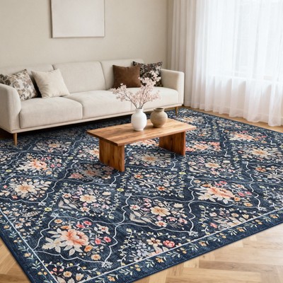 Orieon Large 120 x 156 in Washable Area Rug, Ultra-Soft Floral Rug for Living Room Dining Room, Non-Slip Low Pile Foldable Carpet, Machine Washable