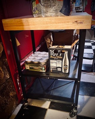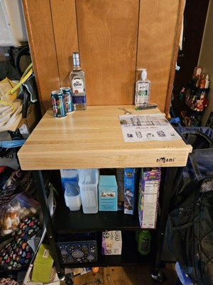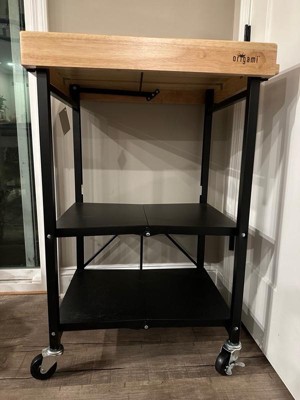 [This review was collected as part of a promotion.] "I've been using the Origami portable kitchen island and it has been a lifesaver for me. Since my kitchen is small, I lacked counter space, but this island made Thanksgiving cooking a little easier. The wooden surface was perfect for cutting up potatoes and carving the turkey. We placed all the desserts on the shelves and everyone helped themselves. I received numerous compliments, and people were asking me where they could get one for themselves. The quality of the island is amazing, and it's very convenient to have it on wheels. Plus, when not in use, it folds up easily for storage. I love it!"