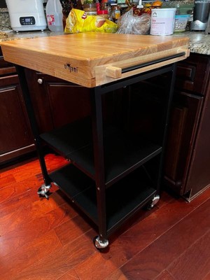 [This review was collected as part of a promotion.] My husband is the cook and he always complains about not having enough kitchen space.. this island bar cart has been a great addition for him! It’s easy to move where we need it, when we need it. Our kitchen is in the process of being remodeled, so our counter space is limited- this came at the right time! We love it! Once summer hits, it’ll be a great thing to have for the grill! We even added a paper towel holder to the side!