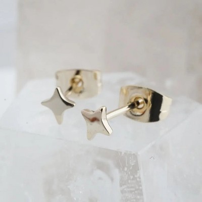 Miniature studs shaped like tiny origami stars - delicate, dimensional, and full of charm. Measuring just 5mm x 4mm, their petite size makes them perfect for everyday wear and effortless stacking. Whether paired with your favorite hoops or styled across multiple piercings, these little stars add a soft, celestial touch to any look.