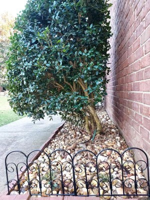 To install, hold the base of the legs for stability and gently press into the ground. Connecting system allows you to connect multiple borders side by side. Made of coated heavy-duty steel, each piece links together easily, accent border with classic rod iron design to fit any decor. Each panel measures 16 inches wide by 18 inches tall. Jasmine classic border is composed of a powder coated steel. The powder coating helps protect against weather elements and aids in the prevention of rust and corrosion. The lightweight design features feet on the bottom that press into the ground for easy installation. The simple connecting system allows you to connect multiple borders by inserting feet into side rings. Multiple borders can be used to accommodate straight lines, angles and curves to create a garden design all of your own.