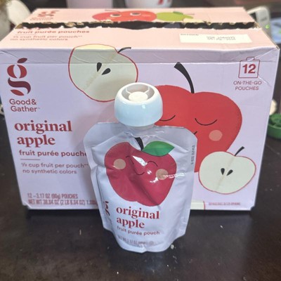 Enjoy apple goodness on the go with these Original Apple Fruit Puree Pouches from Good & Gather™. Portable and convenient, these puree pouches contain 1/3 cup of fruit per pouch* with no synthetic colors. They're ideal for busy mornings, school lunches or a post-workout pick-me-up.