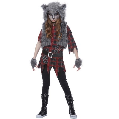 Your child will be howling all night long on Halloween eve, until the full moon appears. They'll need to fight against the wolf within, as they transform into a werewolf as soon as the clock strikes midnight. The battle against human and wolf begins the moment they put on the Kids Werewolf Halloween Costume. It's perfect for trick or treating or for a Harry Potter themed party. They can become the new Professor Lupin in this number! The Kids Werewolf Halloween Costume includes a long sleeved, ragged t-shirt with frayed sleeves and hem detailing. The t-shirt features slash detailing on the front with fake blood, along with the words, FULL MOON' on the top. The costume also comes with a pair of faux fur, grey glovelettes and a fury character half mask of a werewolf. The mask is made from a faux fur material, featuring a set of teeth and two larger vampire-like teeth on the corners of the mouth. Watch as they practice their best howl, ready for the full moon…