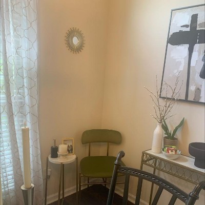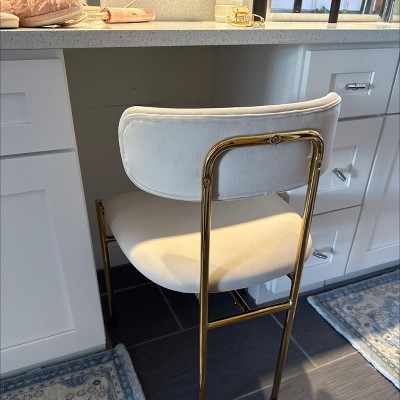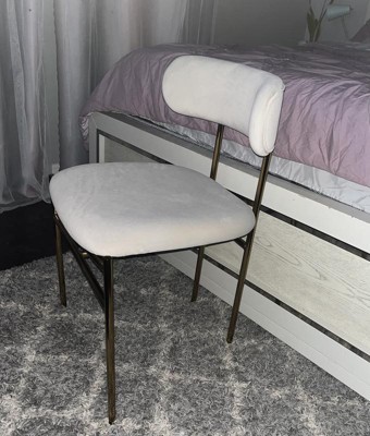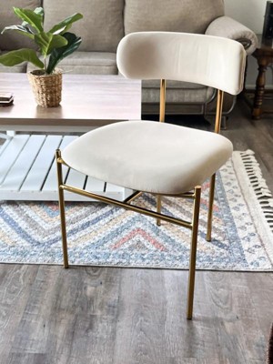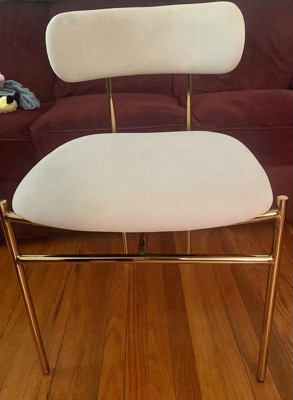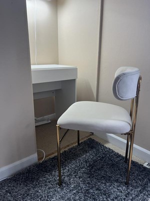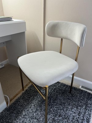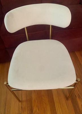 Absolutely in love with this chair! The off-white fabric is gorgeous and pairs perfectly with the gold legs, giving the space a luxurious and modern aesthetic. It's a dining chair, but it also works great as an accent chair. The only hiccup I faced was during assembly, the holes didn't quite line up with the screws, but once it's all set up, it's pure perfection!