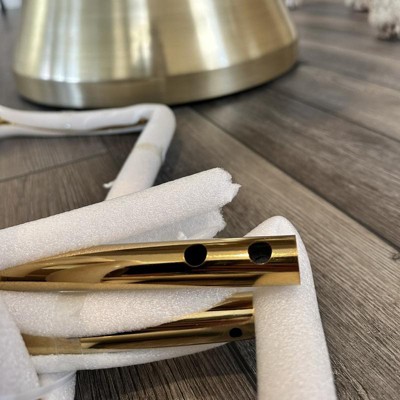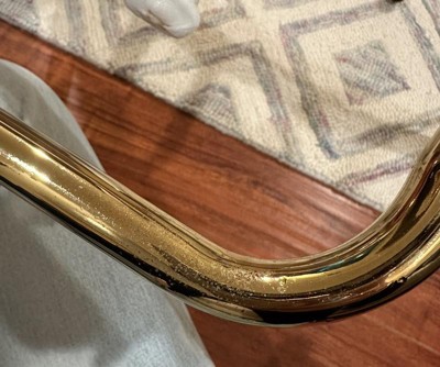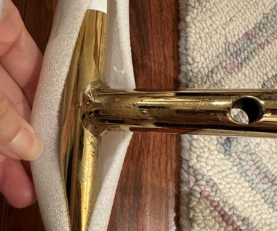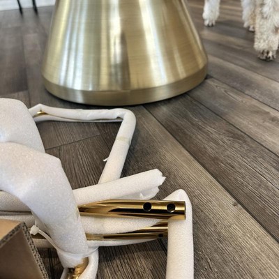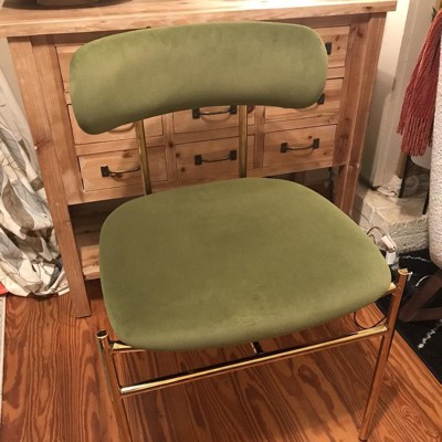 While the chairs were seemingly packed well, one was in OK shape while the second arrived with a warped connecting pole and back. The only options were to return by mail or drag to the store for a return (neither a great option), I took a hammer and managed to warp the metal enough to get hit back into place to make the screws work. The top back of the seat was also a park to attach as it was warped too. The green velvet is lovely (more like a light olive green—not as rich as the photos), but the brass had discolorations and scratches even though everything appeared to be well packed. The first chair assembled OK, but you really have to be careful doing the screws as it takes time to align all just right and keep them loose until everything has been somewhat secured so it will work. Pretty chairs but sketchy quality and not worth the price per chair.