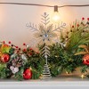 Ornativity Glittered Snowflake Tree Topper has little silver gems attached in strategic places, which add a beautiful decorative touch to the ornament. The silvery and golden treetop decoration will glisten and reflect any lights that are hung throughout the area and will complete the winter wonderland feel you are aiming for. Because of its metallic and refined silver and gold finish, this topper allows for the use on various themed trees. Its great quality allows for firm support on the tree and can be stored and reused. This item is made with high quality glitter to prevent the unwanted messes during the holiday season. When Christmas is over, the tree topper can act as a steady decoration for your table, shelf, or piano top. Keeping the topper as a decoration will extend the Christmas mood in your home. This medium sized metal lightweight tree topper is coated in a layer of silver and gold glitter and has a spiral wire connected at the bottom allowing for secure attachment to a tree. The spiral is made sturdy so it can stand on a flat surface. Your holiday spirit will be enhanced to an extraordinary level with this wintery holiday item.