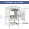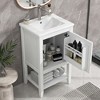 The ORRD 20" Bathroom Vanity with Sink offers a compact yet functional solution for small bathrooms or powder rooms. Featuring a sleek white finish, it includes a soft-closing door for quiet operation, an open shelf for easy access to daily essentials, and a side storage rack for added convenience. The integrated ceramic sink adds a clean, modern touch, while the sturdy construction ensures durability and long-term use in any bathroom space.