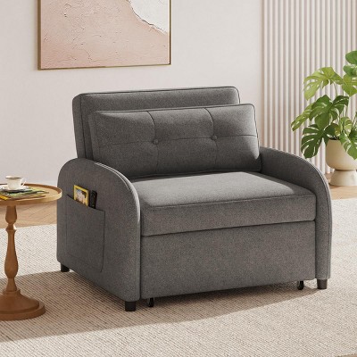 ORRD 3-in-1 Sleeper Sofa Bed, Convertible Loveseat with Pillow & Pocket, Cotton Linen for Living Room Apartment,Beige