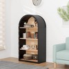 Add modern charm and functional storage to any room with the ORRD 4-Tier Black Arched Bookshelf. Standing 43 inches tall, this sleek bookcase features a stylish arched frame and four spacious open shelves to showcase books, décor, plants, or collectibles. The black finish offers a bold, contemporary look that pairs effortlessly with various interior styles. Whether placed in a living room, bedroom, office, or hallway, this compact yet eye-catching bookshelf helps you stay organized without sacrificing design.