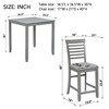 - Easy to follow instructions and streamlined construction allow for simple installations that can be completed quickly and easily. With the dimension of table size: 34.5”L x 34.5”W x 36”H, Chair size: 17”W x 21”D x 40”H.