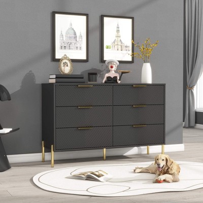 ORRD 6-Drawer White Dresser with Gold Pulls and Metal Legs - Modern Storage for Hallways, Entryways and Living Rooms