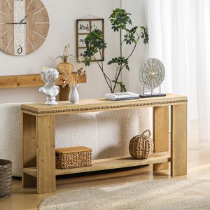 Bring rustic charm and boho flair to your home with this 63" console table. Designed with a decorative beaded trim and a 2-tier structure, it provides both style and practical storage. The narrow profile makes it ideal for entryways, foyers, or placement behind a sofa, while the bottom shelf offers space for baskets, books, or décor. Crafted with a rustic farmhouse finish, this versatile table blends seamlessly with bohemian, coastal, or traditional interiors.